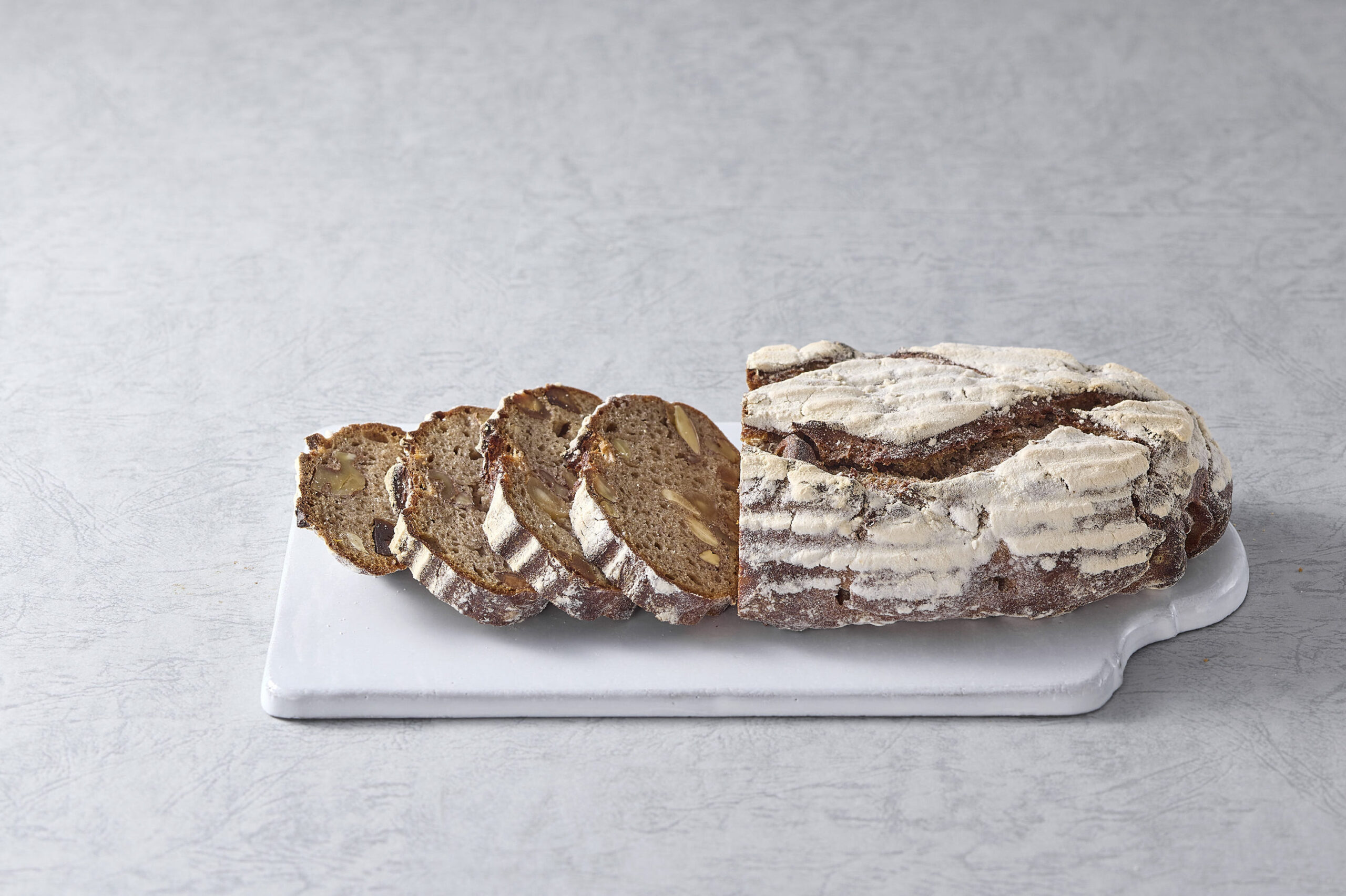 ライ麦88%の生地にくるみ、アーモンド、マカダミアナッツ、カシューナッツを練りこみました ひと口食べるごとに、ライ麦のコクに加えて、ナッツの味わいが上品に口の中に広がります